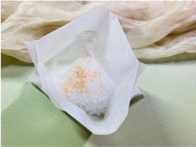 ポイントは、お塩入りお茶パックをつま先まで押し込むこと!