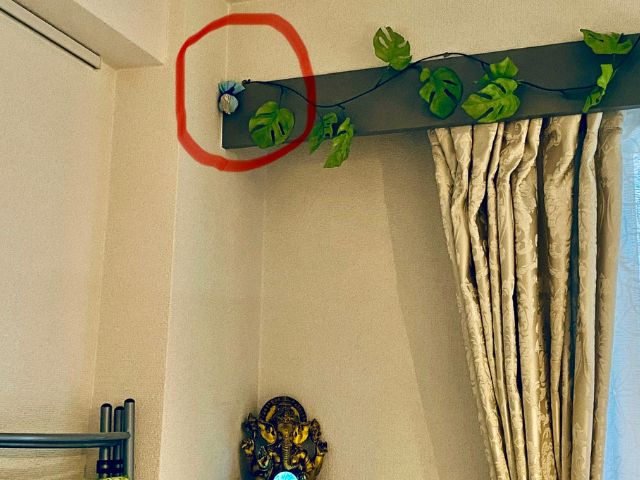 かわいく包んで、部屋の四隅に貼る。
